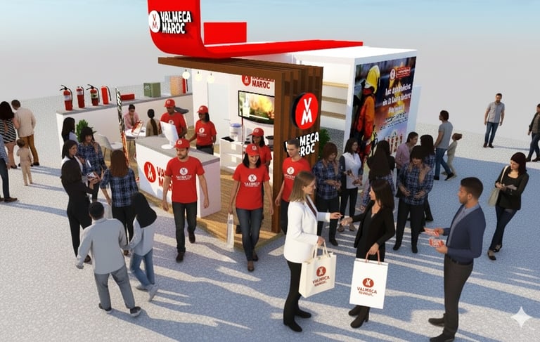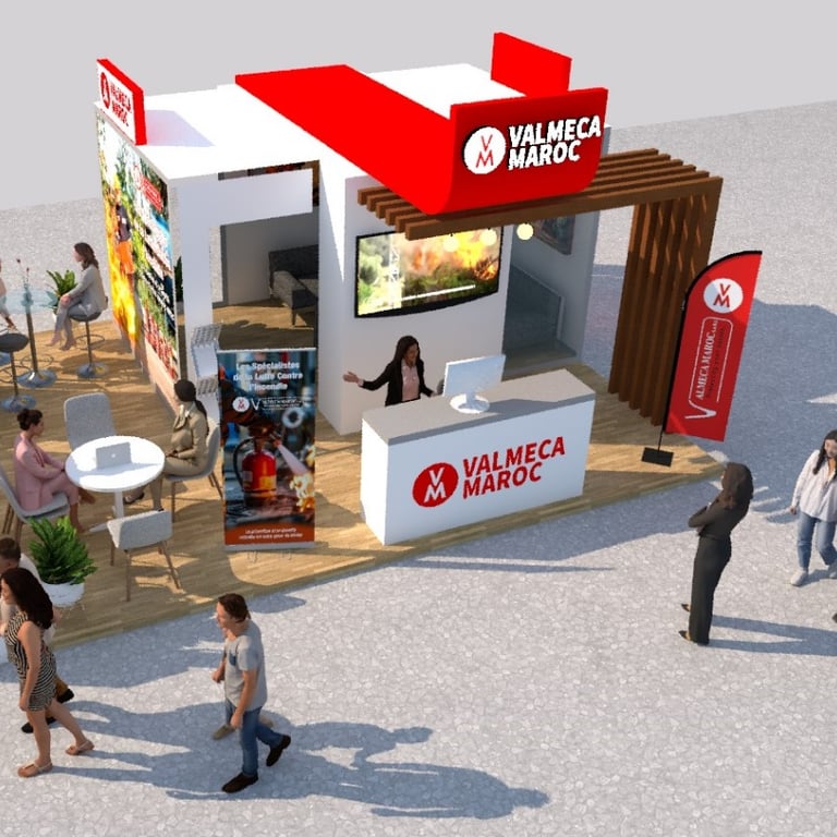 Nous avons conçu et réalisé le stand Valmeca, en prenant en charge chaque détail visuel et structurel.